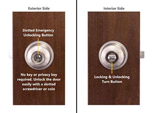 “New” exterior privacy release button: operate with coin or standard screwdriver only. No Privacy key required. Does not have a keyed cylinder, not for use where keyed security is required.