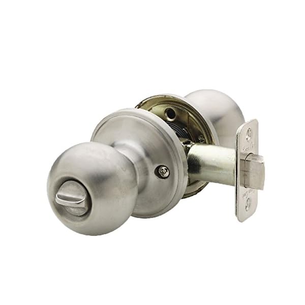 Whether you are remodeling your home, or building a new home, this stylish soft contemporary privacy door knob provides the perfect balance between superior security and quality. The satin stainless finish is inviting, resists smearing , and offers great durability. These locksets feature round corner adjustable latches, nickel plated bolts, sized to fit most doors, and meet the rigorous standards of the Builders Hardware Association..Throw length- 2 inches