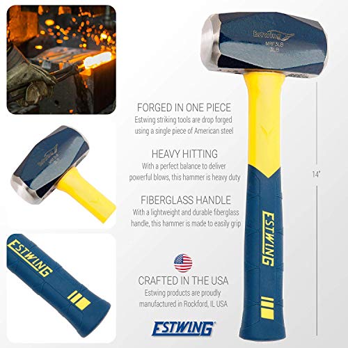 The Sure Strike 32 oz. drilling hammer from Estwing, has a forged steel blue painted head which is hardened and tempered. Both faces are fully polished. Designed for striking cold chisels, brick chisels, punches, star drills, spikes and hardened nails. Both faces are beveled. This drilling hammer has an 11 in. jacketed and textured yellow fiberglass handle which allows for heavier blows in an environment where there is limited swing. A strong reliable tool you can count on. Protect your eyes from flying particles and dust. Always wear safety goggles. Bystanders shall also wear safety goggles.
