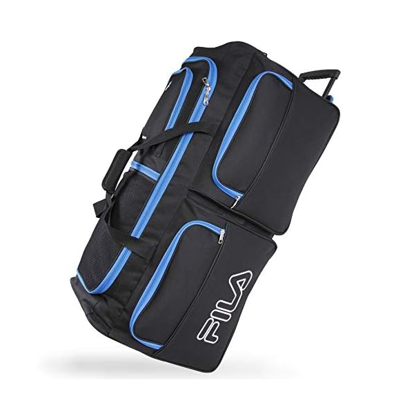 Fila 7-Pocket Large Rolling Duffel Bag, Black/Blue, One Size