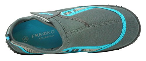 Fresko water shoes are a must have for your next aquatic activity. Whether you are doing water aerobics, kayaking, paddle boarding, canoeing, floating down rocky riverbeds, or walking shell-lined beaches, you’ll want a pair of water shoes to protect your feet. Fresko water shoes feature rubber patterned outsoles for excellent traction and protection for the little swimmers around the pool, water parks, or splash pads. The neoprene upper is water resistant, form fitting and elastic for a soft comfortable fit thats easy to put on. Fresko water sports shoes come in many different styles, colors, and sizes for all ages; including toddlers, little kids, big kids, teens, mens and womens. Water shoes are fun, versitile, and perfect for any summer adventure at any age.