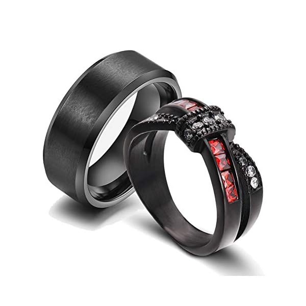 Gy Jewelry Two Rings His and Hers Wedding Ring Sets Couples Rings Women’s Black Gold Plated Red Agate Cubic Zirconia…