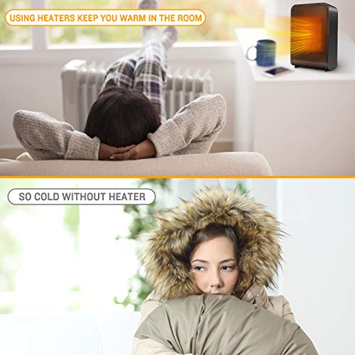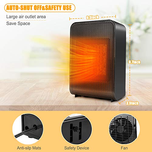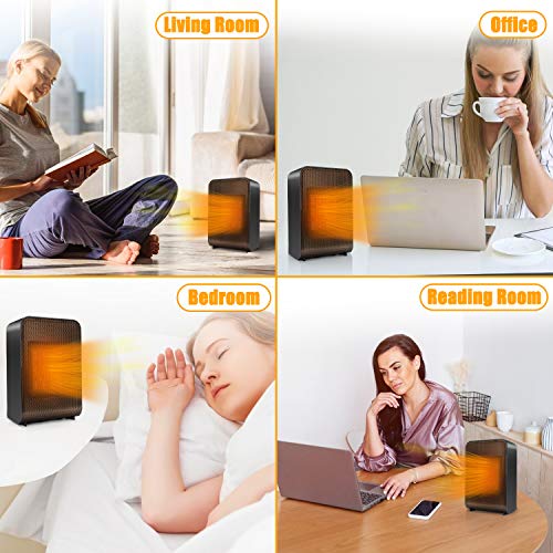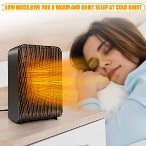 Energy Efficient Heater: The small space heater heats up a room within seconds thanks to its PTC ceramic heating tech and high speed fan, the compact size provides effective, consistent warmth for small rooms up to 200 sqft. Helps to save electric bills by heating up needed small spaces instead of heating the whole house with other centralized heaters. It’s quiet enough to use in a bedroom while sleeping.
