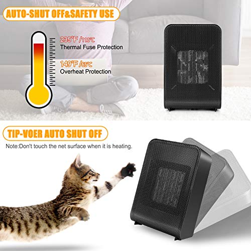 Safe & Reliable Heater: This small space heater made from fire-retardant materials. It will automatically shut it off if the temperature exceeds the limit value and back to work once it gets to a safe temperature inside.Tip-over protection shut off heater when it’s knocked over, perfect for houses have kids and pets.