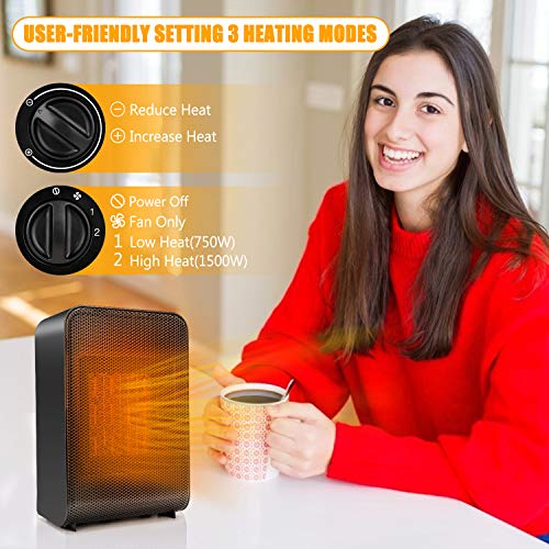 Portable Electric Space Heater, Space Heater with Tip-Over and Overheat Protection, 1500W/750W Heater with Thermostat for Safely Heat up 200 sq. Ft in Minutes & Use by Indoor Office Desk Floor