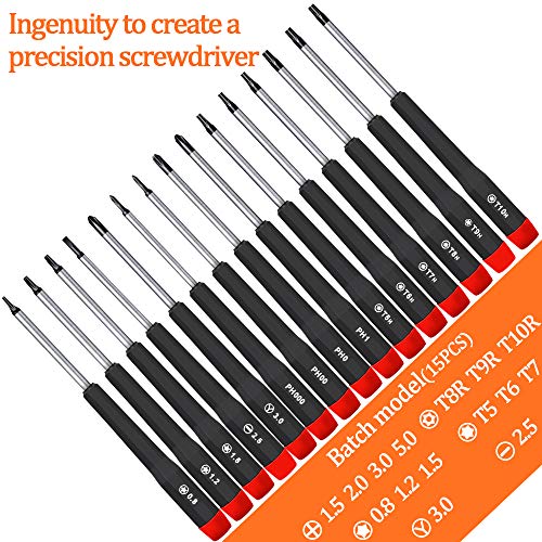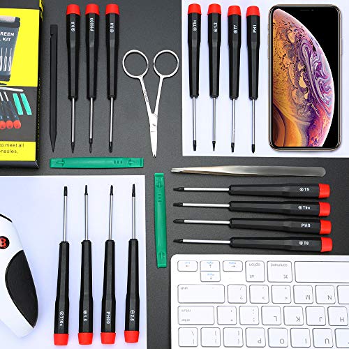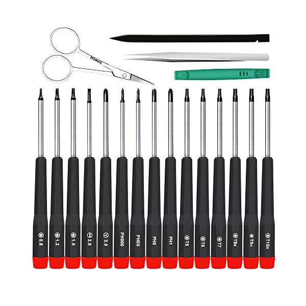 ➤【Multi Bit Screwdriver Set】The precision screwdriver set includes the most commonly used sizes: Phillips(PH000, PH00, PH0, PH1), Torx (T5, T6, T7), Torx Security(T8H, T9H, T10H), Pentalobe(P2, P5, P6), Triwing 3.0, Slott 2.5, 2Xspudgers opening pry tools, Tweezer and Scissor.