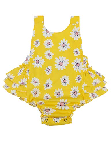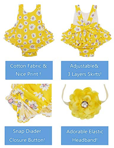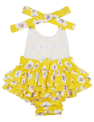 Baby Girl’s Floral Print Ruffles Romper Summer Clothes with Headband