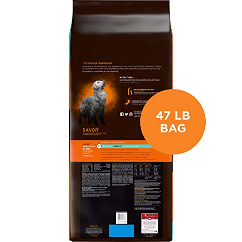 Make mealtime exciting and nutritious for your canine with Purina Pro Plan SAVOR Shredded Blend Chicken & Rice Formula adult dry dog food. Real chicken as the #1 ingredient and rice, an excellent source of carbohydrates for energy, come together in a wholesome recipe with great flavor, and the crunchy kibble and tender shredded pieces provide an appealing texture. Feel good about serving your dog 100% complete and balanced nutrition, and take comfort knowing that each serving contains optimal levels of protein and fat to help your dog maintain an ideal body condition. Vitamin A and linoleic acid, an omega-6 fatty acid, promote healthy skin and coat to keep him looking great, and guaranteed live probiotics help support his digestive health. Formulated with high-quality protein and other essential nutrients, Purina Pro Plan SAVOR helps support your beloved pet’s overall health.