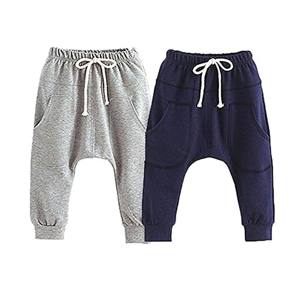 REWANGOING 2 Pack of Little Baby Boys Girls Active Casual Hiphop Harem Pants Infant Sport Jogger