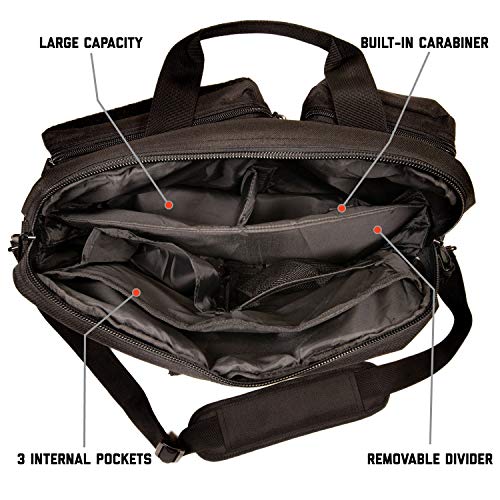 Made for Simple Organization – Features a large main compartment, divided interior pockets, a removable divider and three front pockets. Dimensions – 10.25″ H x 15″ W x 4.75″ D