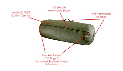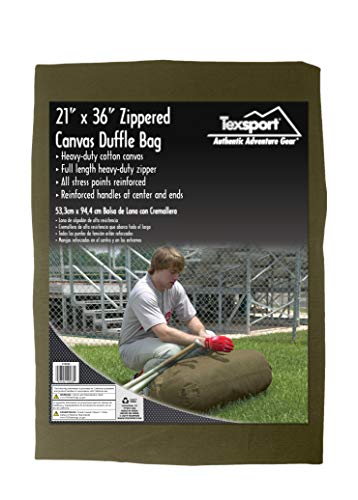 The Texsport Zippered Canvas Duffle Bags featured in Black is 50” x 30”. The bag comes with a full length heavy-duty zipper and two reinforced handles.